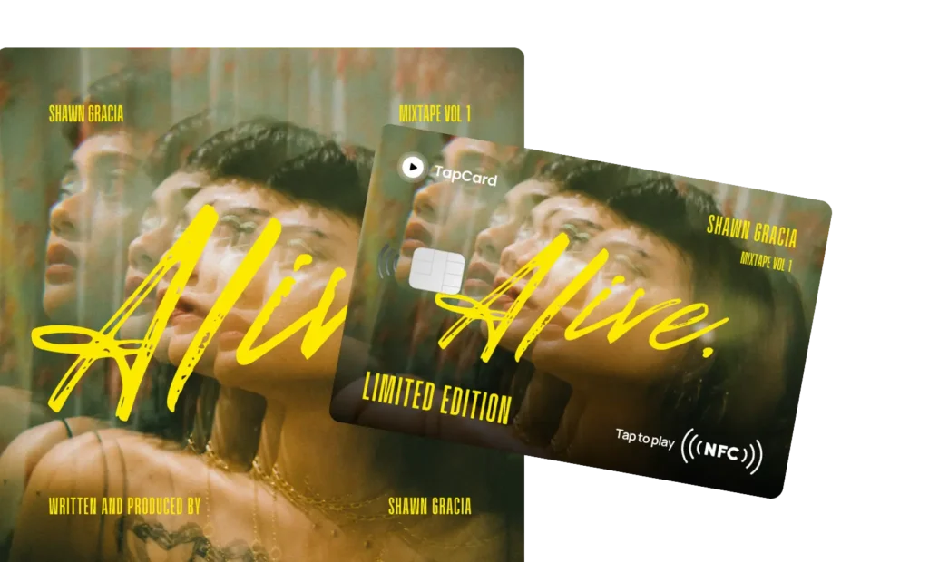 A TapCard is a collectible NFC album card — a physical release you can hold, gift, trade, and display. Tap it with your phone to open the album in TapPlayer.